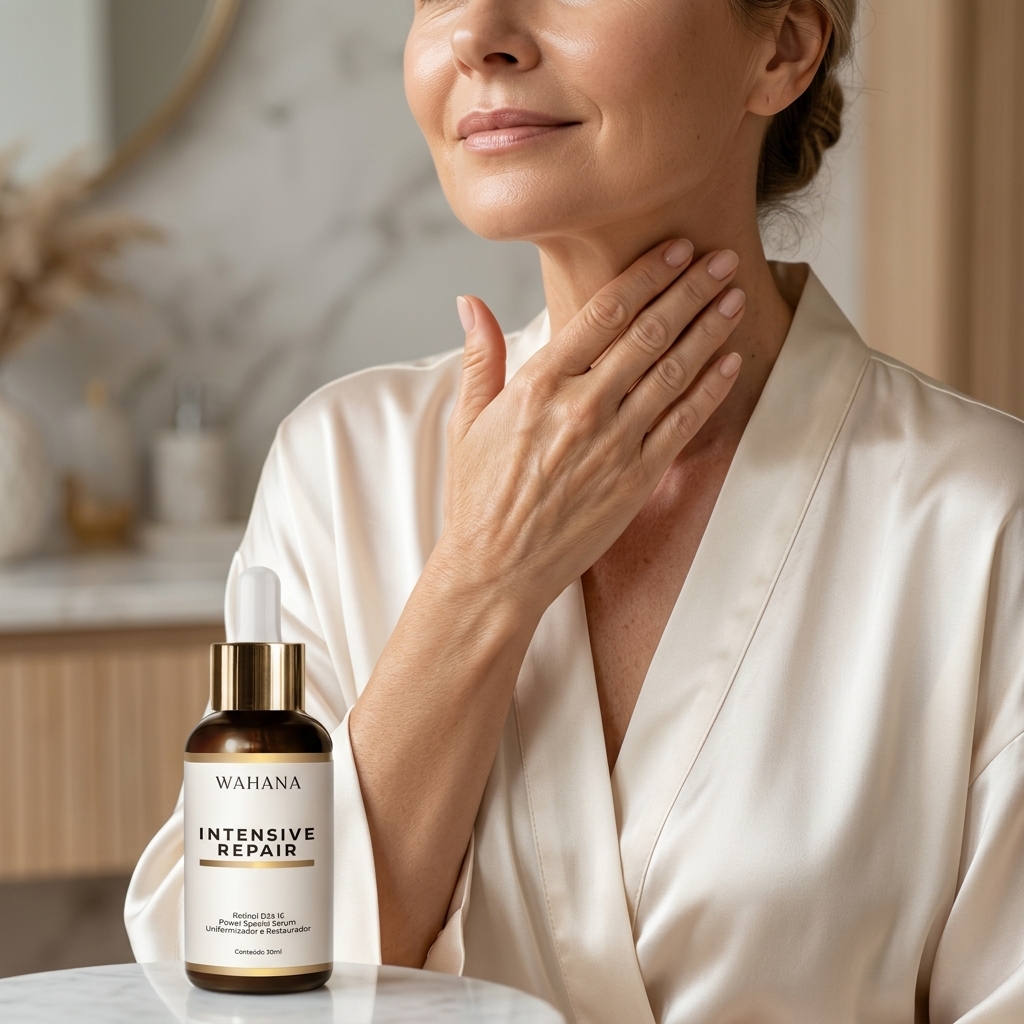 À noite, o foco deve ser a renovação. A pele madura se beneficia imensamente de derivados de vitamina A. Aplicar o Retinol Cream Wahana no colo ajuda a reorganizar as fibras de colágeno, tratando as sleep wrinkles e melhorando a textura global da pele. De acordo com a American Academy of Dermatology, o uso consistente de retinoides é um dos métodos mais eficazes para reverter sinais de fotodano.