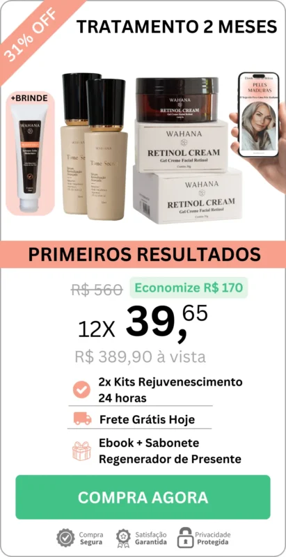 Ao potencializar os efeitos do Creme Retinol Wahana, ele age profundamente na pele, garantindo um resultado ainda mais poderoso, deixando-a visivelmente mais jovem, hidratada e radiante.