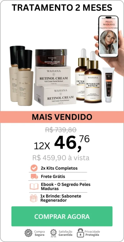 Ao potencializar os efeitos do Creme Retinol Wahana, ele age profundamente na pele, garantindo um resultado ainda mais poderoso, deixando-a visivelmente mais jovem, hidratada e radiante.